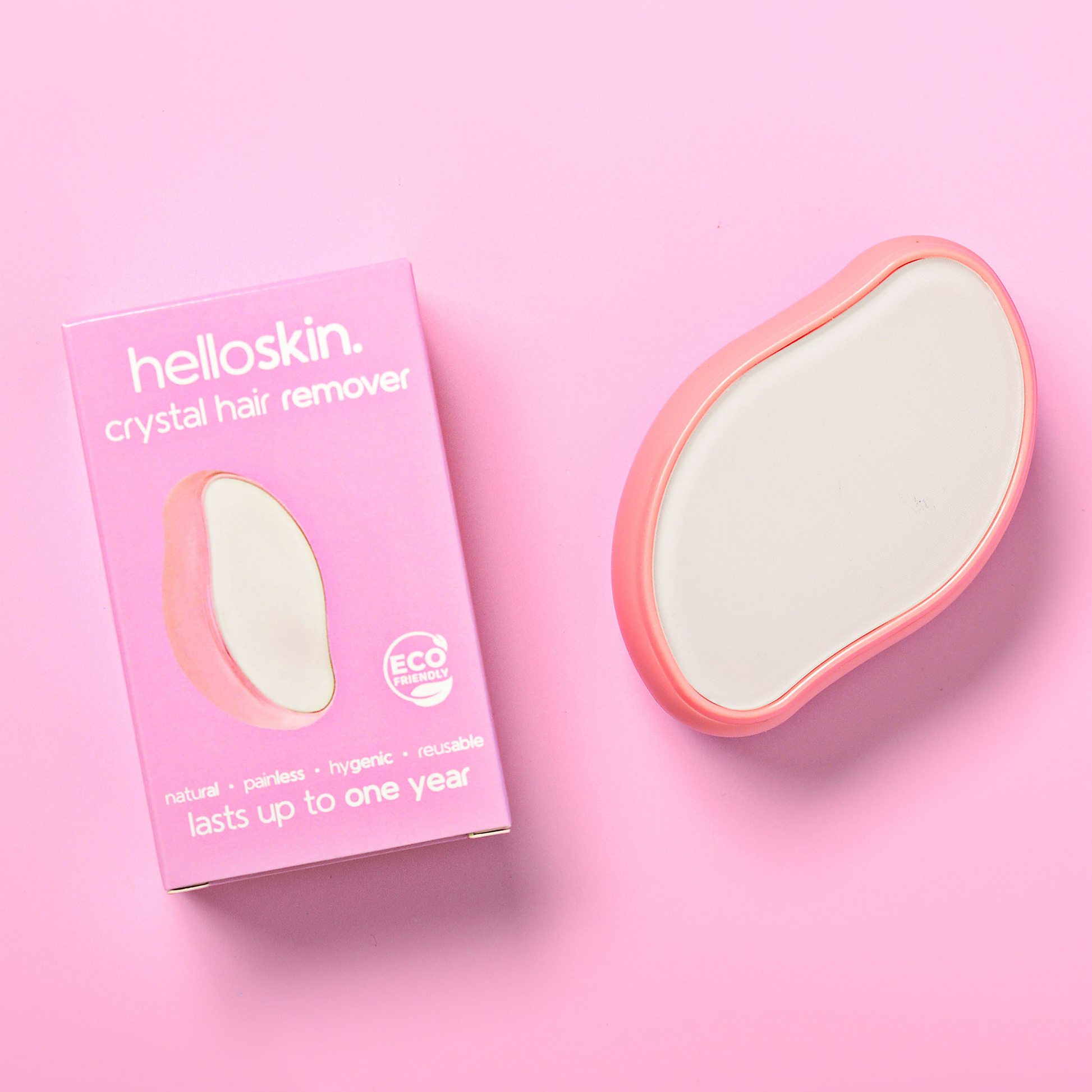Gently rub the helloskin crystal hair remover in circular motions on clean, dry skin to buff away unwanted hair. Avoid staying on one area for more than 10–20 seconds, and skip sensitive areas such as the bikini area and armpits and do not use on the face. *Visit our product page or support centre for safe, detailed advice on how to use your product correctly.